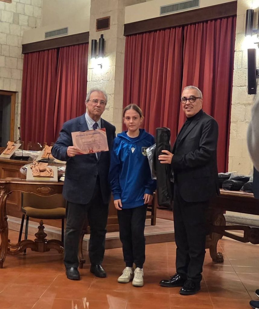 In rappresentanza del settore in rosa della società con sede a Santa Barbara, ha partecipato alla premiazione anche la giovane calciatrice, classe 2013, Valentina Tedone, talento delle giovanili gialloblù.