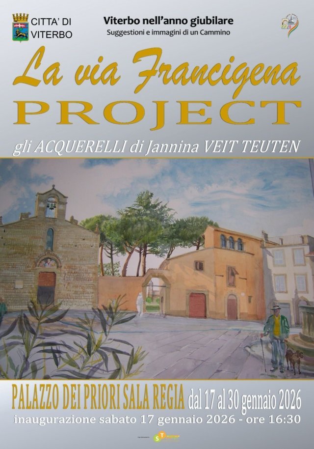 “La mostra di Jannina Veti Teuten – sottolinea la consigliera comunale delegata alla promozione della Via Francigena e Giubileo 2025 Alessandra Croci – rappresenta un’occasione unica per immergersi in un viaggio artistico attraverso i paesaggi e i luoghi storici dell’antica via di pellegrinaggio che attraversa anche la nostra città. Non solo un’esposizione di opere quella di Jannina Veti Teuten, ma un percorso che celebra il patrimonio storico e naturale delle terre che attraversa. Oltre 140 gli acquerelli realizzati dall’artista tra Canterbury e Roma, per raccontare l’identità, il valore spirituale e la bellezza di un’antica via percorsa da migliaia di pellegrini”.