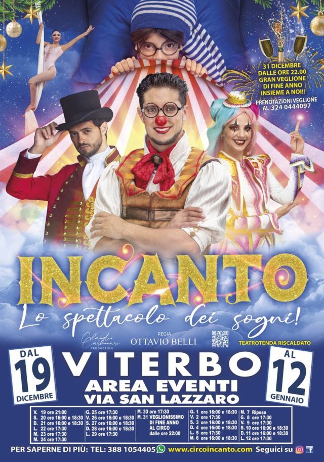 Arriva per la prima volta a Viterbo Incanto, lo spettacolo di circo contemporaneo che ha conquistato il Lazio e che dal 19 dicembre accenderà l’Area Eventi di via San Lazzaro con un teatro tenda riscaldato e uno spettacolo pensato come un vero e proprio regalo di Natale. Un biglietto sotto l’albero che promette emozioni, stupore e quella magia scenica capace di riportare tutti, adulti e bambini, al piacere semplice del meravigliarsi. Incanto non è un circo tradizionale, in pista niente animali, ma una compagnia di giovani artisti pluripremiati pronti a dare forma al viaggio onirico di Cristian, un bambino di dieci anni che sogna di diventare una stella del circo e del varietà.