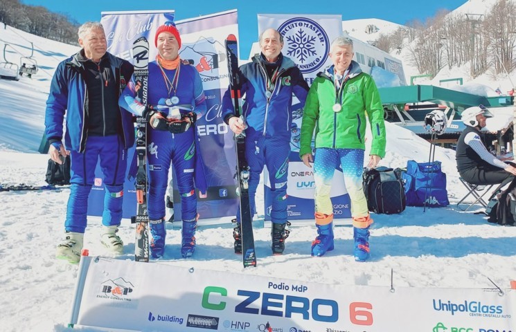 Sono stati ben quattro i titoli regionali vinti dagli sciatori viterbesi. Fantastico en-plein per il solito Francesco Dimitri che si è aggiudicato sia il titolo di gigante che di speciale. Lo sciatore dello S.C. CZERO6 ha preceduto in entrambe le gare Fabio Brizioli (Aliski Racing) nella categoria M A5. Ha sfiorato l’en-plein anche l’altro viterbese e suo compagno di team Romolo Parenti neo-campione regionale di speciale e argento in gigante. Il quarto titolo arrivato nella Tuscia è merito di Maria Giuseppina Caporossi (S.C. Viterbo) vincitrice nel gigante della Categoria Master C8. Da applausi anche i terzi posti degli sciatori dello S.C. Viterbo Gianluca Bacheca (nel gigante M B7), Carlo Nepi (slalom M B8) e Umberto Massimo Macchi (slalom M B7). Piazzamenti anche per i compagni di club Stefano Zucchi (8° nel gigante B8), Sandro Ercoli (6° nel gigante B7), Pierfrancesco Paci (7° gigante M A6) e Giovanni Bartoletti (12° gigante M A6). Per la cronaca sono stati ben sei, oltre Dimitri, gli sciatori in grado di aggiudicarsi entrambi i titoli regionali sia di slalom che di gigante: Antonino Bartolomeo (Master B10), Maurizio Paris (M B9) e Dario Spanu (M A4) dell’Aliski Racing, Rinaldo Francois D’Harmant (M B7) del CAI Roma, Sergio Amodio (M A3) e Alessandro Paolucci (M A1) dello S.C. CZERO6. Complessivamente sono stati 26 titoli i regionali assegnati: 11 in speciale e 15 in gigante: 12 sono andati agli atleti dello S.C. CZERO6, 8 all’Aliski Racing, 3 al CAI Roma ed 1 a testa allo S.C. Orsello, allo S.C. Viterbo e allo Snow-Side Team.