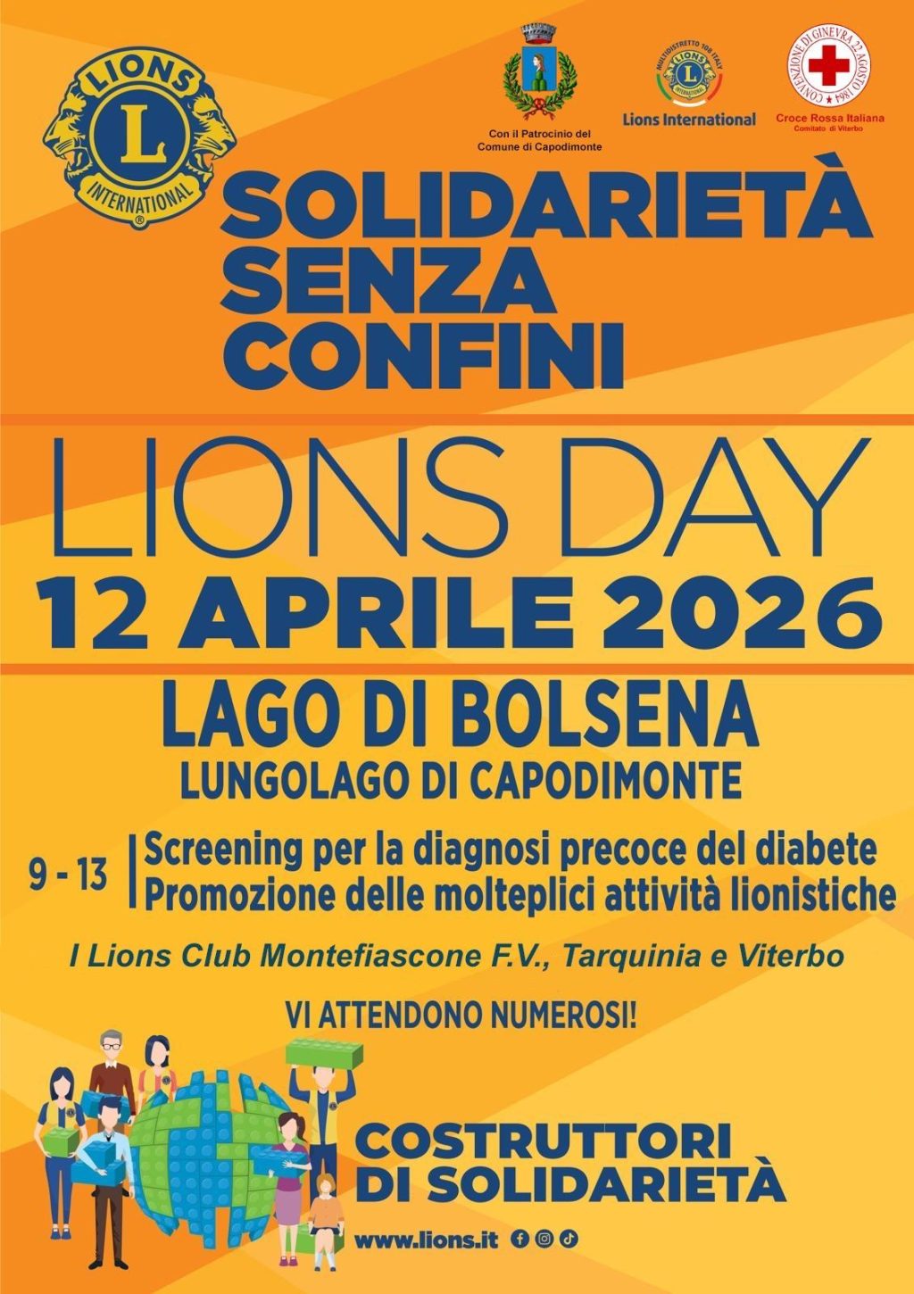 Domenica 12 aprile il lungolago di Capodimonte ospiterà il Lions Day 2026, una mattinata dedicata alla solidarietà, alla prevenzione e alla salute pubblica. L’iniziativa, patrocinata dal Comune di Capodimonte, si svolgerà dalle ore 9 alle 13 sulle rive del Lago di Bolsena e vedrà protagonisti i Lions Club di Montefiascone, Viterbo e Tarquinia, in collaborazione con la Croce Rossa Italiana – Comitato di Viterbo.