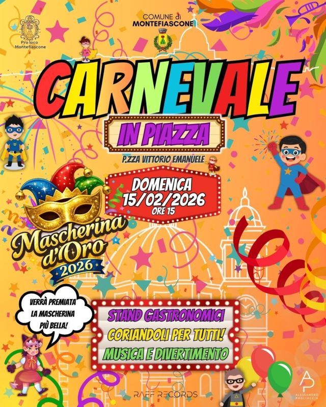 A Montefiascone, invece, il Carnevale 2026 sarà pensato in modo particolare per bambini e famiglie. L’appuntamento è fissato per domenica 15 febbraio alle ore 15.00, quando la piazza si riempirà di colori, coriandoli e di una festosa atmosfera. Nel corso del pomeriggio si svolgerà il concorso “Mascherina d’Oro 2026”: i partecipanti potranno salire sul palco, sfilare e farsi ammirare anche sul maxi schermo. Prima e durante la premiazione, prevista per le ore 18.00, saranno attivi stand gastronomici e punti di ristoro, pensati per consentire alle famiglie di vivere l’evento in modo comodo e rilassato.
