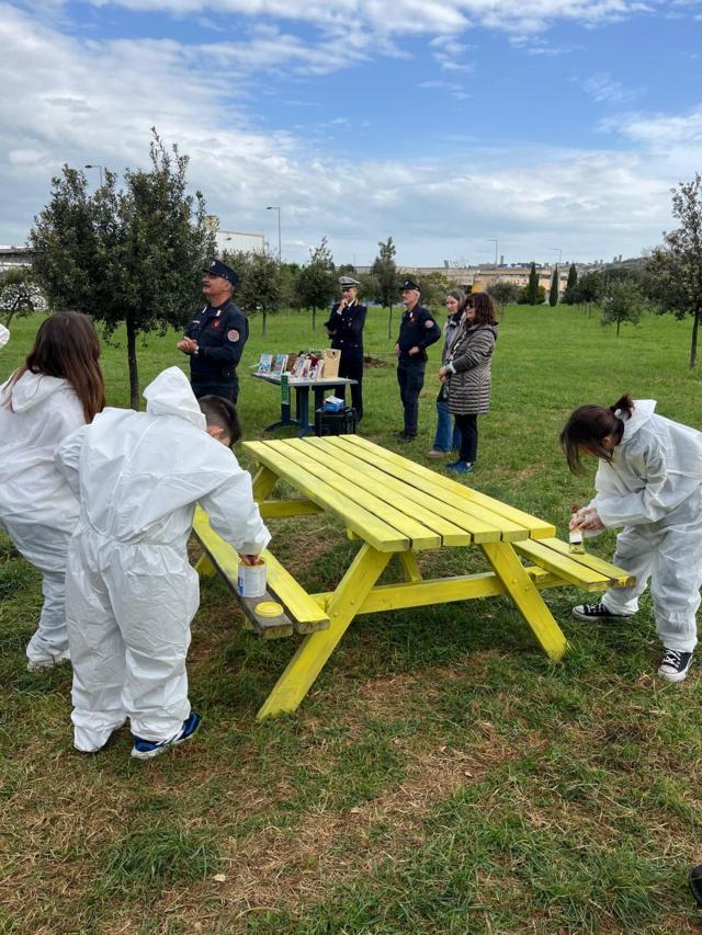Una mattinata all’insegna dell’impegno civico si è svolta il 15 aprile presso il bosco urbano di Tarquinia, coinvolgendo una rappresentanza degli studenti delle classi seconde della scuola secondaria di primo grado dell’IC “Ettore Sacconi”. Accompagnati dai docenti, i ragazzi hanno rinnovato le panchine dell’area verde, donate dal Comune, ritinteggiandole di giallo, colore simbolo della lotta al bullismo e al cyberbullismo. Hanno inoltre piantato un arbusto tipico della macchia mediterranea, segno concreto di cura e responsabilità verso l’ambiente. L’attività nasce da una proposta sviluppata nell’ambito della Rete di Scuole per la Legalità “Giovanni Falcone”, che in questo anno scolastico coinvolge gli studenti in percorsi di cittadinanza attiva.