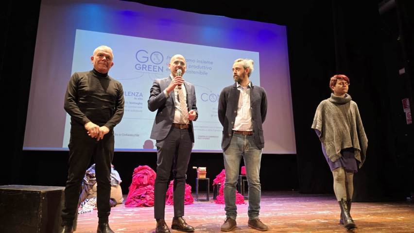 Ieri al teatro San Leonardo, anche questo associato alla Cna, Beppe Allocca ha portato in scena il tema della sostenibilità applicata all’artigianato, per sensibilizzare in maniera ironica sui concetti di riutilizzo e riuso. Il messaggio dello spettacolo è infatti lo stesso di Go Green: “Genesi del rigenero” – scritto e interpretato dallo stesso Allocca – parla dei cenciaioli, gli artigiani che dal 1850 riciclano indumenti usati. Pratese e artigiano, attraverso una rivisitazione della Bibbia incentrata sulla rigenerazione dei tessuti, ha messo in scena un mix di artigianato, teatro e moda che è stato apprezzato da tutti i presenti.
