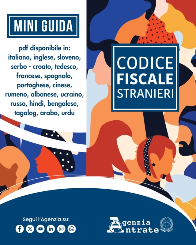 È stata pubblicata una mini-guida multilingue dedicata al codice fiscale per i cittadini stranieri, pensata per offrire un supporto chiaro e immediato a chi arriva o vive in Italia. Il documento, disponibile online e tradotto in 18 lingue, illustra in modo semplice e sintetico cos’è il codice fiscale, quali funzioni svolge, come ottenerlo e in quali circostanze è richiesto.