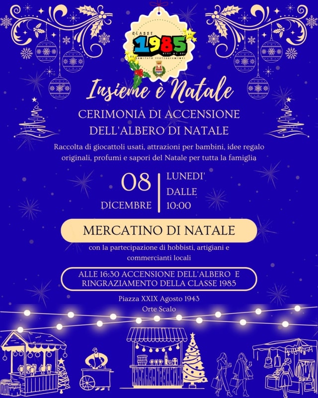 Il Comitato Festeggiamenti Classe 1985 è pronto a far vivere a Orte Scalo tutta la magia del Natale con un ricco programma di eventi che accompagnerà la comunità dall’8 dicembre al 6 gennaio.