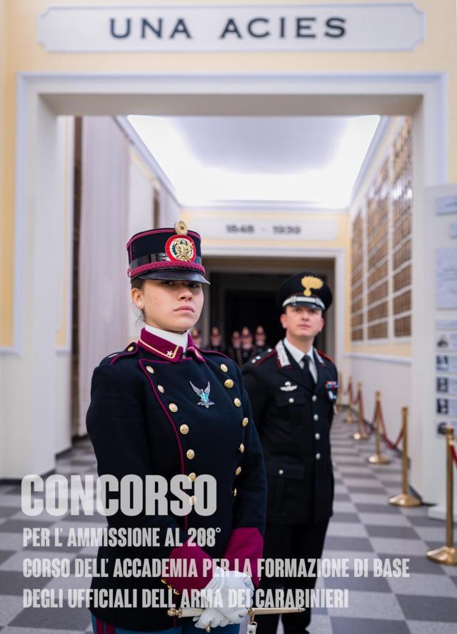 I vincitori del concorso, ammessi al 208° Corso dell’Accademia Militare di Modena, frequenteranno un corso di formazione della durata di cinque anni, seguendo corsi militari e universitari, ad indirizzo giuridico-amministrativo presso l’Accademia Militare di Modena e, successivamente, alla Scuola Ufficiali Carabinieri di Roma, finalizzati al conseguimento della laurea magistrale in giurisprudenza.