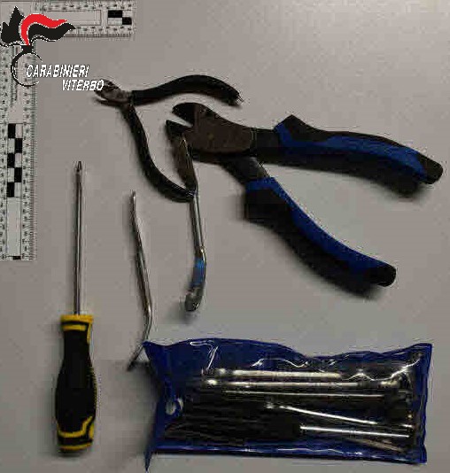 Durante un servizio di controllo del territorio condotto nei giorni scorsi, i Carabinieri dell’Aliquota Radiomobile della Compagnia di Civita Castellana hanno fermato un’autovettura con a bordo due giovani cittadini cileni, che si aggiravano nella zona attirando l’attenzione dei militari. L’insolita presenza dei due giovani ha, infatti, spinto i Carabinieri, che da giorni stanno conducendo mirati servizi di contrasto ai reati predatori in tutta la provincia, a perquisire l’autovettura rinvenendo all’interno dell’abitacolo numerosi oggetti da scasso.