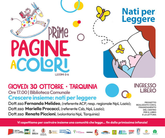 Dopo il grande successo degli eventi inaugurali, il progetto PRIME PAGINEaCOLORI apre la sua stagione di formazione con un appuntamento dedicato al potere della lettura condivisa. Giovedì 30 ottobre 2025, alle 17, presso la Biblioteca Comunale “Vincenzo Cardarelli” (via Umberto I, 34 – Tarquinia), si terrà l’incontro “Crescere insieme: Nati per Leggere”, a ingresso libero. L’iniziativa inaugura il ciclo di incontri rivolti ad insegnanti, educatori, genitori e operatori che desiderano approfondire il valore della lettura ad alta voce nella crescita dei bambini da 0 a 6 anni. L’appuntamento vedrà la partecipazione della dottoressa Fernanda Melideo, referente dell’Associazione Culturale Pediatri e responsabile regionale NpL per il Lazio, della dottoressa Mariella Procacci, referente NpL Lazio e Centro per la Salute delle Bambine e dei Bambini, e della dottoressa Renata Piccioni, volontaria NpL Tarquinia.