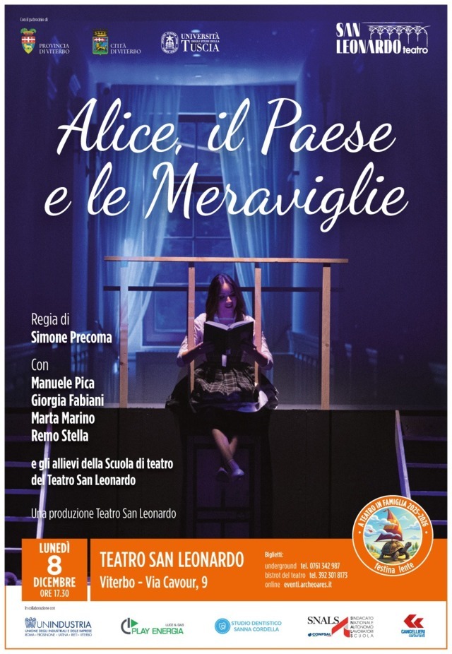 La regia è di Simone Precoma, con Manuele Pica, Giorgia Fabiani, Marta Marino, Remo Stella e gli allievi della Scuola di Arti Sceniche San Leonardo. L’allestimento valorizza il carattere visionario del racconto, restituendo un Paese delle Meraviglie che parla al presente con un immaginario vivace e contemporaneo.
