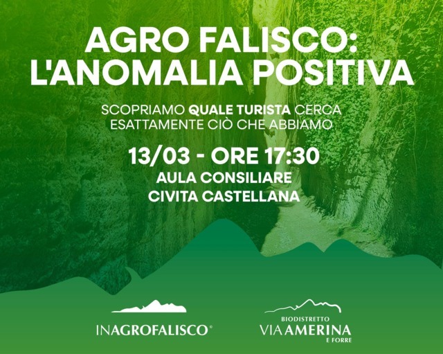 | Il 13 marzo alle ore 17:30, presso l’Aula Consiliare del Comune di Civita Castellana, verrà presentato lo studio “Agro Falisco: l’anomalia positiva. Scopriamo quale turista cerca esattamente ciò che abbiamo da offrire“, un’analisi strategica dedicata al posizionamento turistico dell’Agro Falisco e dei comuni che fanno parte del Biodistretto della Via Amerina e delle Forre. L’incontro rappresenta il primo tentativo di costruire una visione organica di marketing territoriale per quest’area, partendo da un’analisi strutturata del contesto, dell’ecosistema locale e delle prospettive del turismo nei prossimi anni. Durante la conferenza verranno presentati i principali passaggi dello studio, sviluppato attraverso strumenti avanzati di analisi dei dati e di intelligenza artificiale applicata alla ricerca di mercato. L’obiettivo è comprendere come valorizzare in modo più efficace le caratteristiche distintive del territorio e individuare i segmenti di pubblico più coerenti con la sua identità. L’incontro è rivolto ad amministratori, operatori turistici, imprese agricole e a tutti gli attori del territorio interessati a costruire una strategia condivisa per lo sviluppo turistico dell’Agro Falisco. |