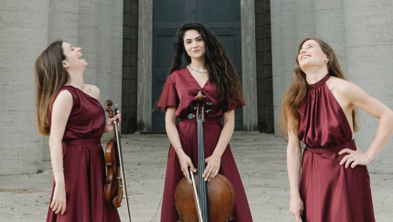 TRIO Hèrmes – Formato dalle musiciste Ginevra Bassetti, Francesca Giglio e Marianna Pulsoni, il Trio Hèrmes si è presto imposto all’attenzione del panorama musicale giovanile italiano. Il Trio ha infatti tenuto concerti presso Festival e Stagioni concertistiche di rilevanza nazionale ed internazionale. Vincitore assoluto dell’ European Music Competition “Città di Moncalieri” 2019, del Primo Premio al concorso “Crescendo” di Firenze 2021 e del Primo Premio al concorso “Premio Alberghini” di Bologna, il Trio ha affrontato lo studio del repertorio sotto la sapiente guida del Trio di Parma e Pierpaolo Maurizzi, conseguendo brillantemente il titolo di Master di Secondo Livello in Musica da Camera presso il Conservatorio “Arrigo Boito” di Parma. Attualmente, l’ensemble continua a perfezionarsi presso l’Accademia Walter Stauffer di Cremona, nella classe del Quartetto di Cremona. Il Trio è stato inoltre selezionato dall’Università MDW di Vienna per prendere parte alla prestigiosa ISA International Summer Academy, avendo così la possibilità di lavorare con docenti quali Hatto Beyerle, Avedis Kouyomdjian, Johannes Meissl ed altri. Dal 2025 le attività dell’ensemble sono affiancate da Pirastro (Pirastro Young Artist Program).