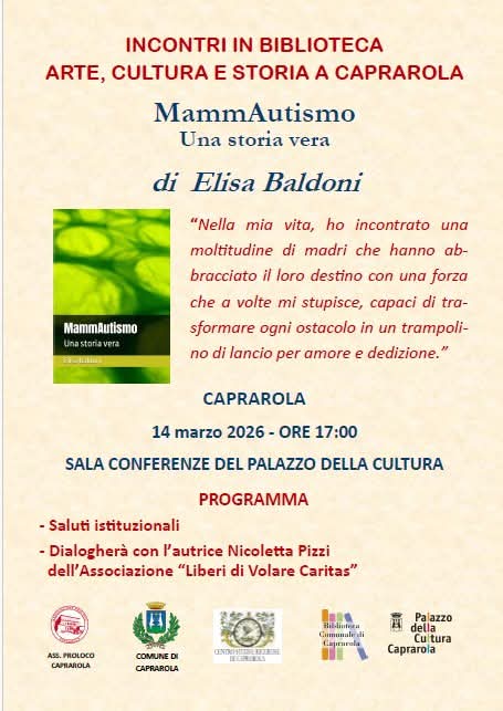 Il primo incontro riguarda la presentazione del libro “MammAutismo”, di Elisa Baldoni, e si terrà alle ore 17 del 14 marzo presso il Palazzo della Cultura di Caprarola.