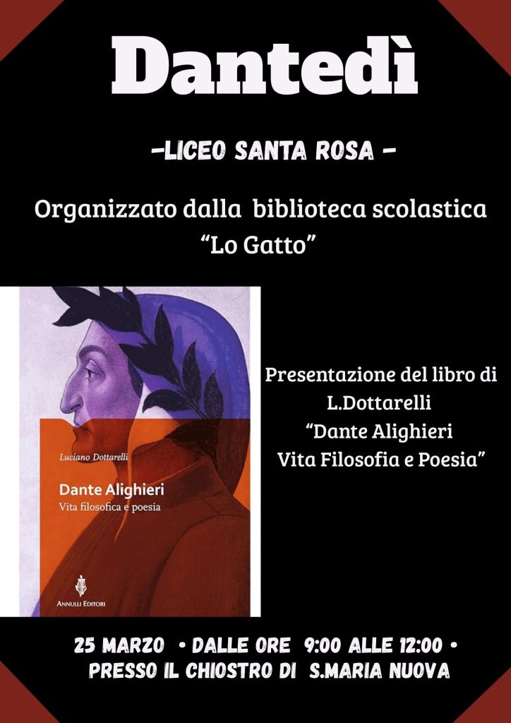 In occasione del Dantedì, il Liceo Santa Rosa, guidato dal dirigente scolastico Alessandro Ernestini, organizza una mattinata dedicata a Dante Alighieri, unendo letteratura, musica e riflessione culturale.