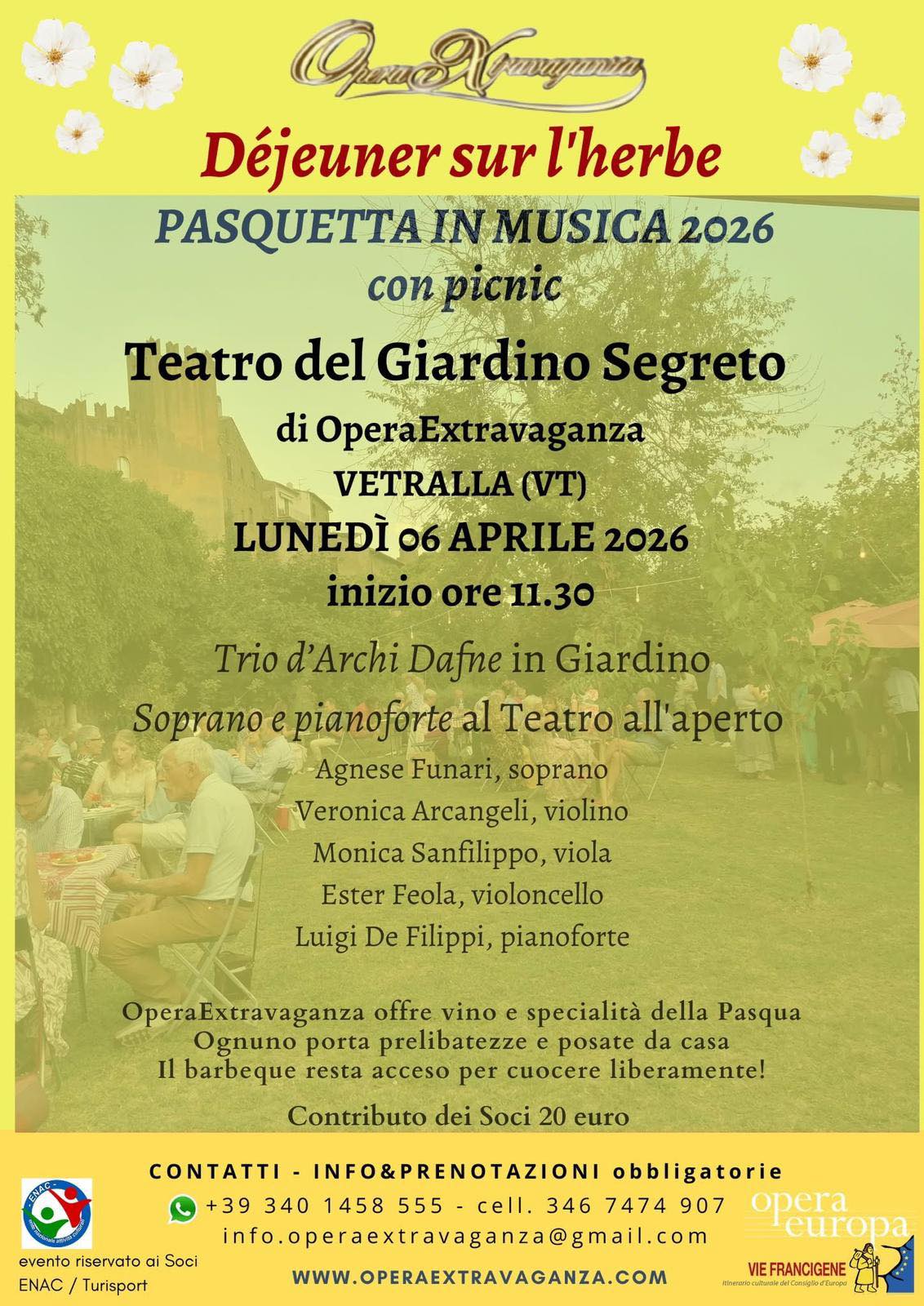 Lunedì 6 aprile, dalle ore 11:30, OperaExtravaganza invita il pubblico a vivere una giornata all’insegna della musica dal vivo e della convivialità, nel suggestivo scenario del Giardino Segreto a Vetralla.