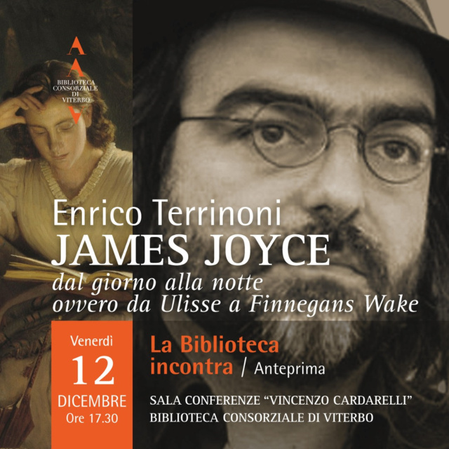 Venerdì 12 dicembre, alle 17.30, per il nuovo appuntamento della rassegna “La Biblioteca incontra / Anteprima”, Enrico Terrinoni ci parlerà di James Joyce, a partire dal suo ultimo libro Leggere libri non serve. Sette brevi lezioni di letteratura, in dialogo con Massimo Giacci.