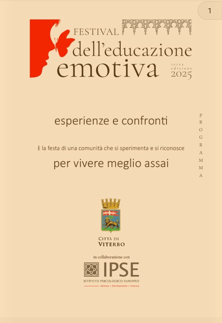 Il Festival dell’Educazione Emotiva nasce su volontà del Comune di Viterbo – assessorato all’Educazione – che nelle ultime due edizioni ha scelto di sperimentare nuovi linguaggi, approcci e punti di vista per promuovere un modello educativo capace di mettere davvero al centro la persona. Una direzione innovativa affidata all’IPSE – Istituto Psicologico Europeo e al coordinamento di Michele Palazzetti, che hanno guidato il percorso strutturando un programma capace di unire creatività, riflessione e partecipazione attiva degli studenti.