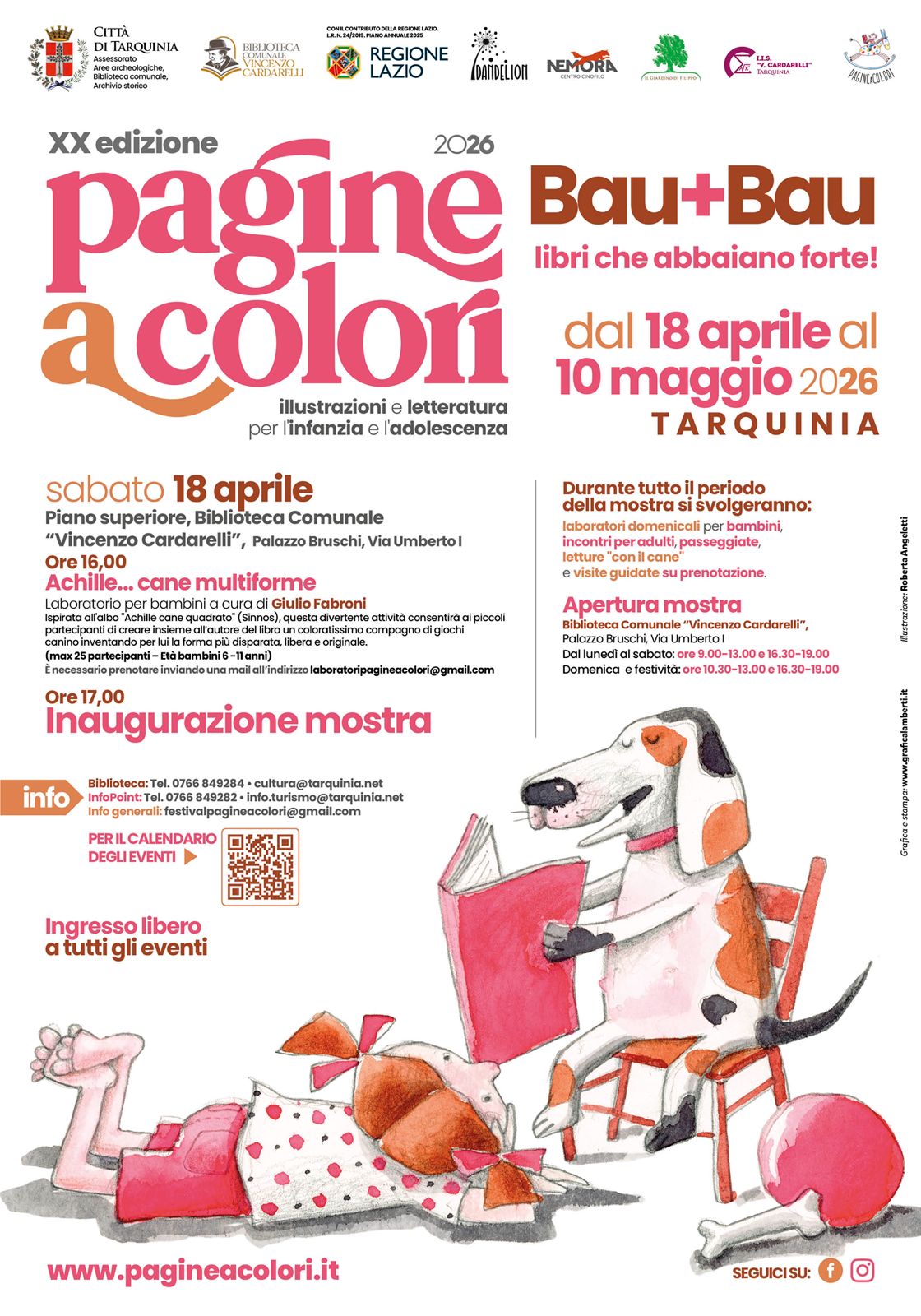 La mostra di PAGINEaCOLORI è promossa dall’associazione Dandelion, con il sostegno del Comune di Tarquinia, il contributo della Regione Lazio (L.R. n. 24/2019, piano annuale 2025), ed è realizzata in collaborazione con Memoria – Centro cinofilo, l’associazione Il giardino di Filippo e l’IISS “Vincenzo Cardarelli”.