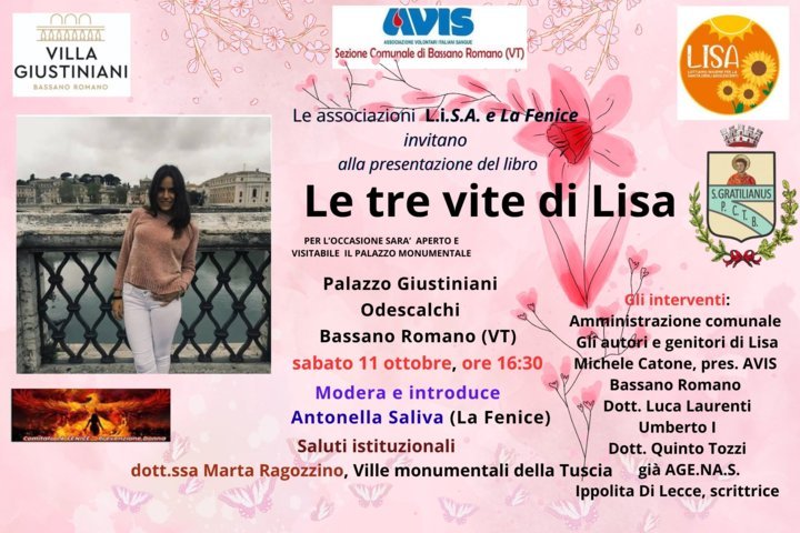 Continua il tour di presentazione del libro “Le tre vite di Lisa”, che sabato 11 ottobre prossimo approderà a Bassano Romano a Palazzo Giustiniani Odescalchi, nella prestigiosa Sala di Fetonte, recentemente restaurata.