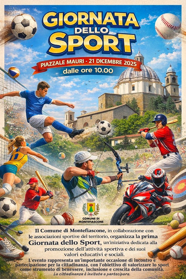 Domenica 21 dicembre, con inizio alle ore 10.00 presso Piazzale Mauri, il Comune di Montefiascone organizzerà la prima Giornata dello Sport.