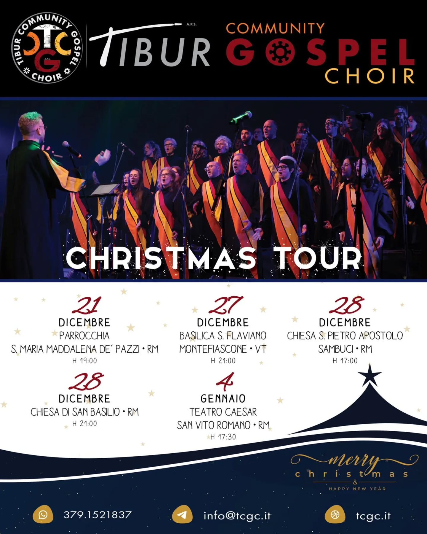 Musica gospel a Montefiascone grazie all’Associazione “Paolo Pezzato” Onlus. L’appuntamento è per sabato 27 dicembre alle ore 21.00 presso la Basilica di San Flaviano, dove approderà, nell’ambito del proprio “Christmas Tour”, la Tibur Community Gospel Choir, diretta dal Maestro Gian Luigi Zucchi.