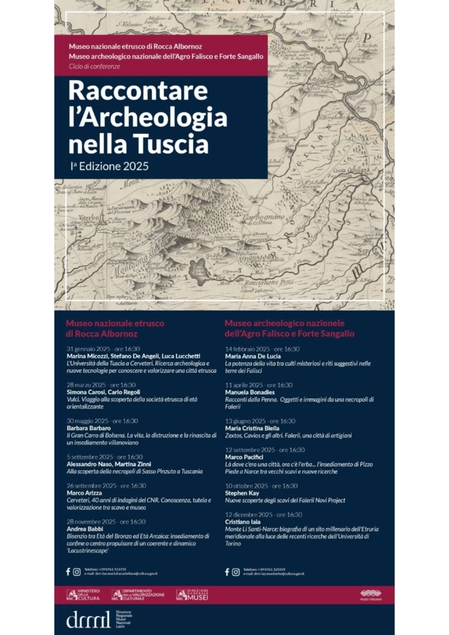 Nella sua presentazione, Stephen Kay, archeologo (Archaeology Manager della British School at Rome) e co-direttore del Falerii Novi Project, illustrerà queste scoperte e proporrà una lettura innovativa della città nel cuore del territorio falisco.