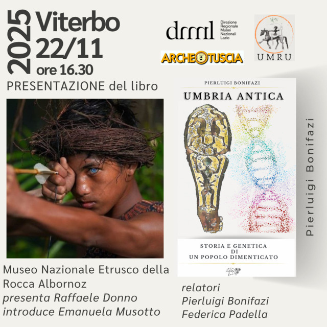 Per tutti gli appassionati di storia, archeologia, scienze umane e genetica: Sabato 22 Novembre, ore 16.30, presso il Museo Nazionale Etrusco della Rocca Albornoz di Viterbo, vi invitiamo alla presentazione del libro “Umbria Antica – Storia e Genetica di un Popolo Dimenticato”, di Pierluigi Bonifazi.