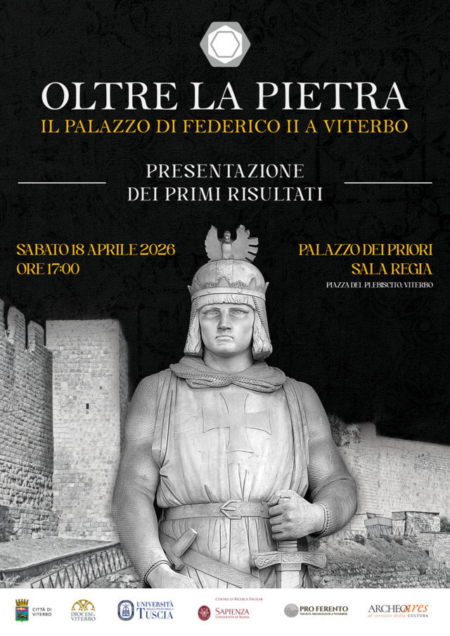 Oltre la Pietra – Il Palazzo di Federico II a Viterbo. Sabato 18 aprile, alle 17,00, nella sala Regia di Palazzo dei Priori, verranno illustrati i primi risultati dell’importante progetto finanziato dall’amministrazione comunale in collaborazione con Archeoares, l’Università degli Studi della Tuscia, il Centro di ricerca DigiLab – Sapienza Università di Roma, Diocesi di Viterbo e la società archeologica viterbese Pro Ferento. Durante l’incontro, aperto al pubblico, si parlerà dei nuovi studi sul Palazzo di Federico II e sulla cinta muraria cittadina, con particolare attenzione ai preziosi dati emersi dalle prime indagini archeologiche e architettoniche condotte nell’ambito dell’annualità 2024-2025 del progetto “Oltre la Pietra” attraverso tecnologie d’avanguardia. Ad aprire i lavori saranno la sindaca Chiara Frontini e l’assessore alla Capitale europea Alfonso Antoniozzi, sarà poi la volta di Francesco Aliperti, amministratore unico Archeoares, del docente di archeologia medievale Unitus Giuseppe Romagnoli, del dottorando di ricerca Unitus Gianpaolo Serone e del tesista Unitus Egidio Severi. L’incontro sarà anche l’occasione per conferire un riconoscimento agli studenti che hanno contribuito attivamente alle ricerche sul campo e in laboratorio. Il Comune di Viterbo intende infatti premiare la dedizione dei giovani studiosi nel valorizzare il patrimonio cittadino. Destinatari del riconoscimento saranno Pierpaolo Nardelli della Scuola di specializzazione in Beni Archeologici – SSBA Unitus, e gli studenti del laboratorio sulla città Egidio Severi, Simona Pace, Emanuele Pace, Virginia Ceppari, Agnese Pisciavino, Stefano Frateiacci, Maria Azzurra Valeri, Veronica Taborri, Alice Piantoni e Marina Gallinelli.