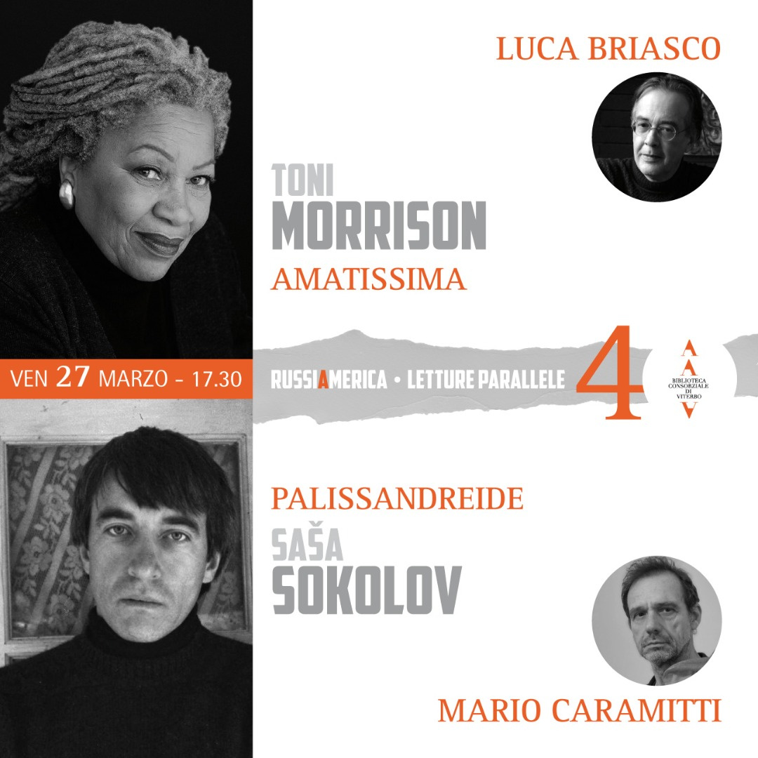 Domani, venerdì 27 marzo, alle 17.30, per l’ultimo appuntamento della nuova serie “RUSSIAMERICA – Letture parallele” dedicata al confronto tra letteratura russa e angloamericana, Luca Briasco e Mario Caramitti proporranno la lettura parallela di Toni Morrison e Saša Sokolov: “Fare i conti con la storia”.