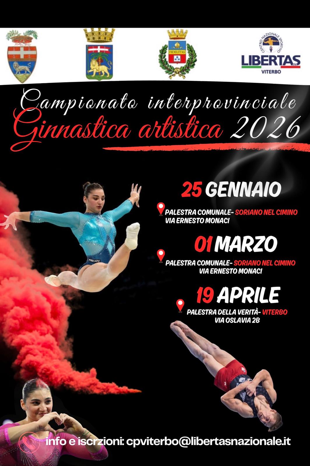 Il giorno 1° marzo, a partire dalle ore 9:00, presso la palestra comunale di Soriano nel Cimino si terrà la seconda tappa del Circuito Interprovinciale di Ginnastica Artistica organizzato da Libertas Viterbo.