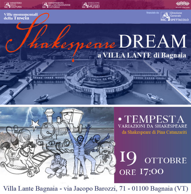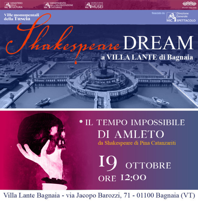 Dopo le date di giugno e settembre, dal 17 al 19 ottobre 2025 è in programma il weekend finale a Villa Lante di Bagnaia (Viterbo), tra alberi, fontane e antichi edifici, con l’obiettivo di valorizzare un luogo emblematico del Cinquecento attraverso la messa in scena di alcune riscritture originali da William Shakespeare a cura di Pina Catanzariti, per la regia di Marcello Cava.