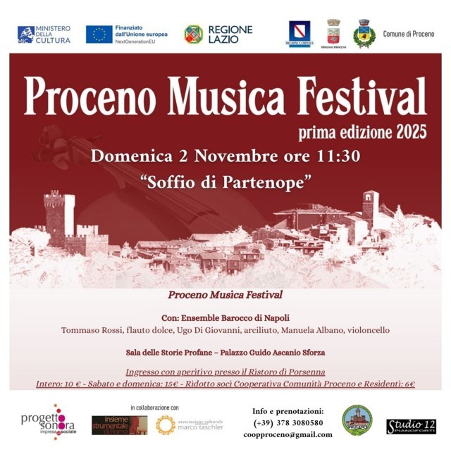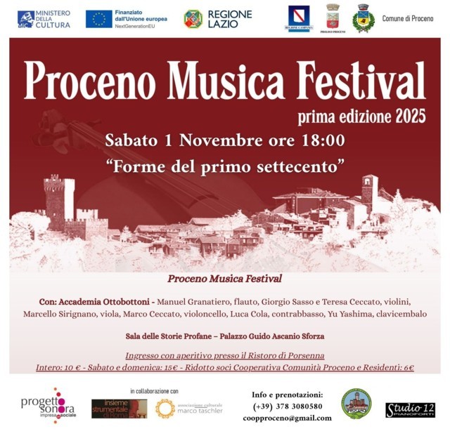 Informazioni e prenotazioni: InfoPoint – mail: coopproceno@gmail.com tel.: 3783080580 (Mercoledì, giovedì, venerdì: 09:00-13:00 – Martedì, venerdì: 15:00-19:00)