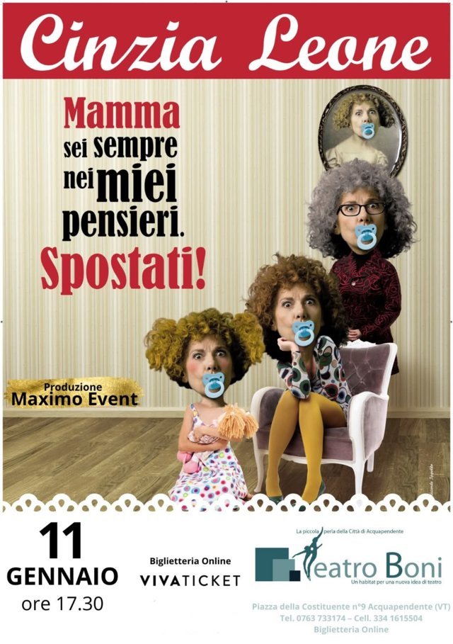 Acquapendente si prepara ad accogliere una delle attrici più amate della comicità italiana: Cinzia Leone, che sarà protagonista dello spettacolo “Mamma, sei sempre nei miei pensieri… spostati!” domenica 11 gennaio 2026 alle ore 17,30 ad Acquapendente al Teatro Boni in Piazza della Costituente, 9.