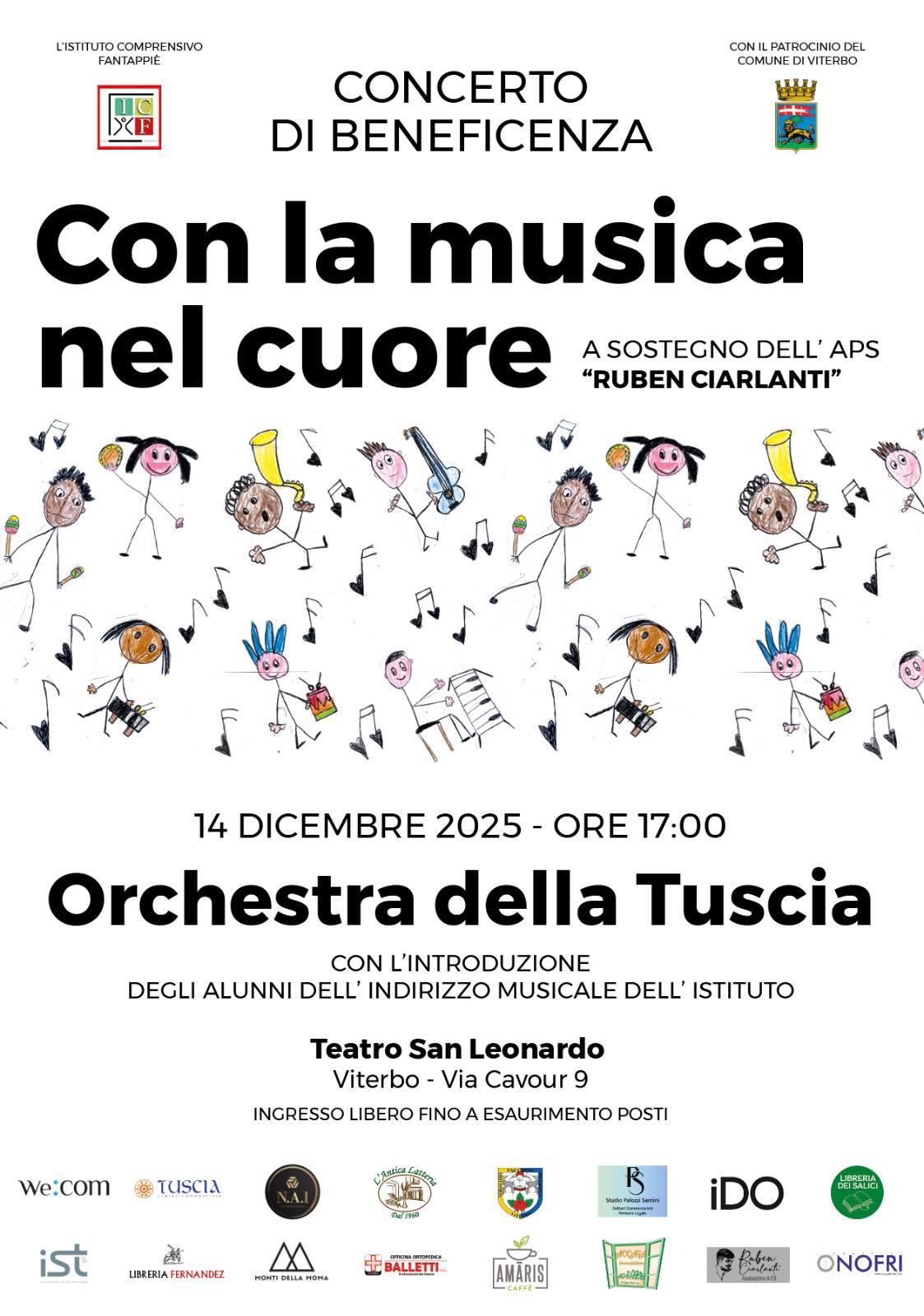 L’evento, organizzato dall’Istituto Comprensivo “Luigi Fantappié” con il patrocinio del Comune di Viterbo, ospiterà l’esibizione dell’ensemble sinfonico dell’Orchestra della Tuscia.