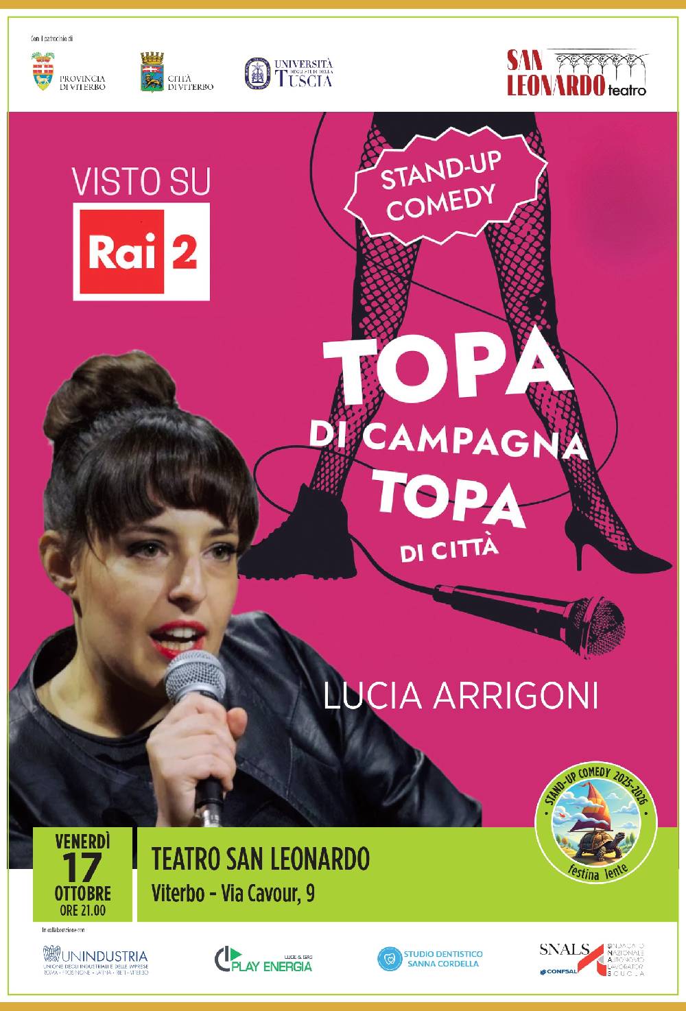 Dopo il successo televisivo su Rai 2, arriva a Viterbo lo spettacolo di stand-up comedy “Topa di campagna, topa di città“, scritto e interpretato da Lucia Arrigoni.