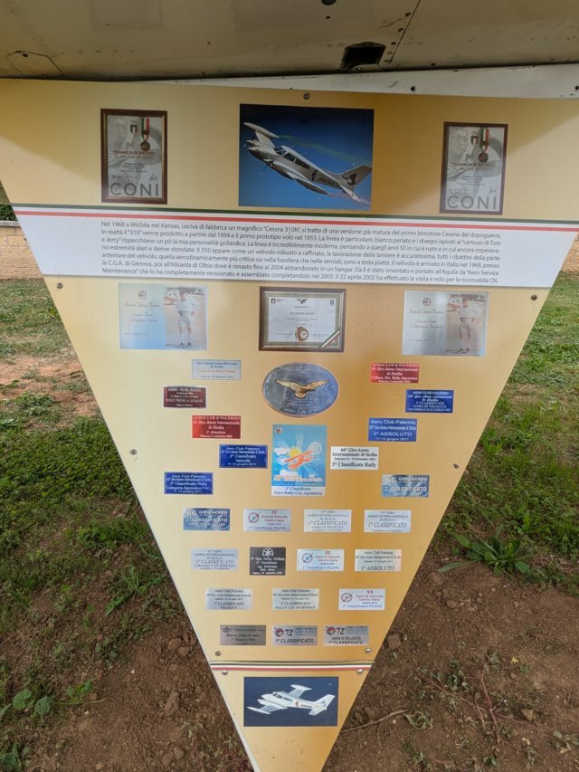 Il comandante Giuseppe Gatto, ronciglionese, ex pilota di linea, istruttore di volo responsabile di vari aereo club e centri di addestramento, con migliaia di ore di volo, con grande generosità ha voluto donare alla sua cittadina il bimotore Cessna 310/N con cui è stato Campione Italiano di velocità aerea, per una serie di vittorie conseguite dal 2010 in gare nazionali.