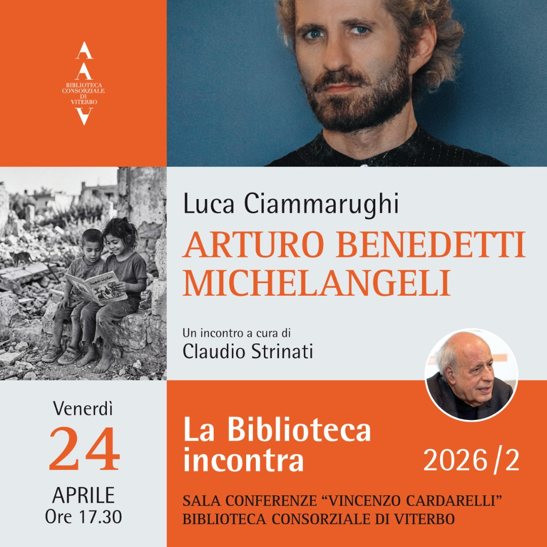 Venerdì 24 aprile, alle 17.30, per il nuovo appuntamento della rassegna “La Biblioteca incontra” – stagione 2/2026, sarà a Viterbo il pianista e musicologo Luca Ciammarughi per presentare il libro Arturo Benedetti Michelangeli. Il mistero di un genio (Edizioni Curci) in dialogo con Claudio Strinati.