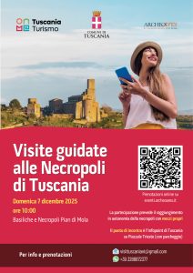 Domenica 19 ottobre 2025 l’Ufficio Turistico di Tuscania in collaborazione con Archeoares organizza una nuova visita guidata esclusivaal centro storico di Tuscania e alla necropoli etrusca di Pian di Mola con la singolare “Tomba a Casa con Portico” e la piazzetta funeraria con sepolture a pozzo dei primi decenni del V secolo a.C.