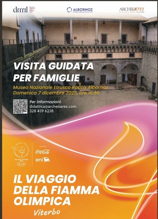 Domenica 7 dicembre, in occasione del passaggio della Fiamma Olimpica dei Giochi Invernali Milano-Cortina 2026, il Museo Nazionale Etrusco di Rocca Albornoz, in collaborazione con Archeoares, organizza una visita guidata per famiglie alle ore 16:30 dedicata al tema dello sport nell’antichità.