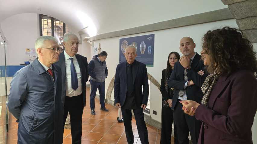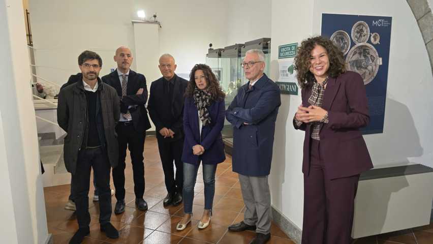 A fare gli onori di casa il presidente della Fondazione Carivit Luigi Pasqualetti con il segretario Emanuel Fulvi, il segretario e il presidente della Cna di Viterbo e Civitavecchia, rispettivamente Attilio Lupidi e Alessio Gismondi, Cinzia Chiulli, presidente dell’Unione Cna Artistico e tradizionale di Viterbo e Civitavecchia, la direttrice del museo Silvia Valentini, i presidenti di Cna Lazio e Cna Roma, nell’ordine Michelangelo Melchionni e Roberto Orlandi, e il direttore di Cna Firenze Lorenzo Cei.
