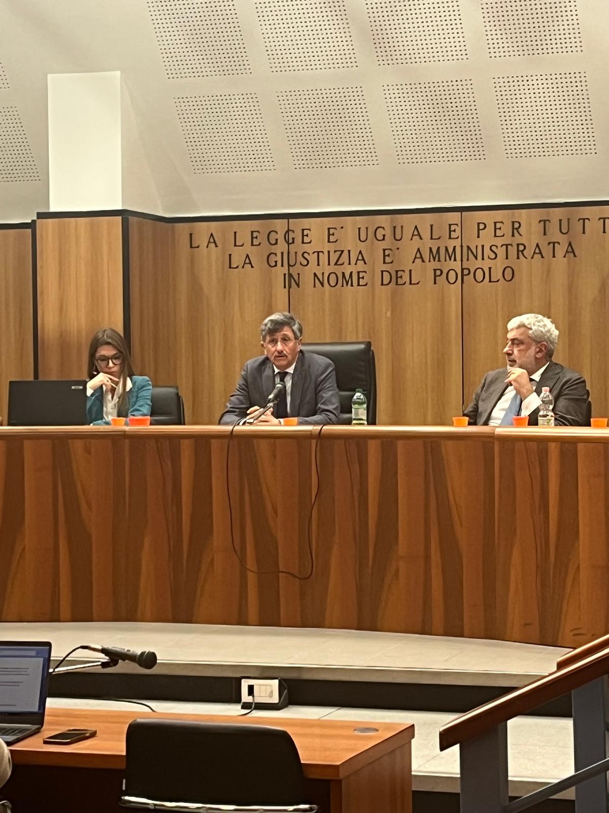 L’intervento del Procuratore della Repubblica, dott. Mario Palazzi, si è invece incentrato sui ripetuti episodi di aggressione al multilateralismo e alle istituzioni internazionali, riconducibili ad un’evidente insofferenza al controllo di legalità e motivati dal tentativo di ridurre il diritto alla regola dettata dal più forte, un crescendo impensabile solo fino a pochi anni fa. Il Procuratore ha poi evidenziato come il controllo di legalità costituisca precondizione della separazione dei poteri e della democrazia liberale, sottolineando al contempo l’emersione odierna di una subcultura che vive i principi di civiltà alla stregua di un mero orpello oltre che ostacolo di fronte al reiterato richiamo alla volontà popolare. Ha infine ripercorso la vicenda che ha interessato i due giudici della Corte penale internazionale, protagonisti dell’evento del 21 maggio, il cui torto principale si è tradotto nell’aver fatto in scienza e coscienza il proprio lavoro, ricevendo per questo un brutale trattamento sanzionatorio. Il Procuratore ha poi concluso sottolineando quanto il virus che ha colpito il mondo renda più fragile le strutture della democrazia, che sono faticose da costruire e facili a distruggersi, e quanto sia necessario appellarsi alle giovani generazioni per una battaglia comune in difesa del diritto.