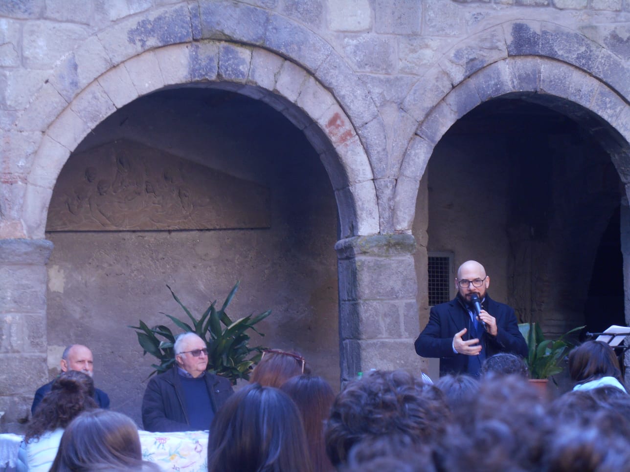 Un intervento particolarmente coinvolgente, che ha suscitato la curiosità e l’interesse dei circa cento studenti convenuti. Ad accompagnare le parole di don Mario Brizi e del prof. Dottarelli e le letture dalla Divina Commedia, brani di musica tardomedievale e rinascimentale, a cura degli alunni dell’indirizzo musicale, eseguiti con il flauto dolce ed il mandolino. Significativo l’intervento del D.S. Alessandro Ernestini, che ha sottolineato l’importanza della fusione tra i vari indirizzi e le diverse anime del Liceo e, soprattutto, il valore di eventi culturali, anche piccoli, che fungano da catalizzatore per valorizzare il centro storico di Viterbo.