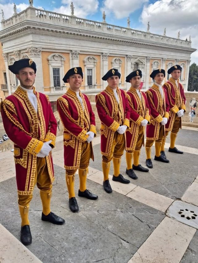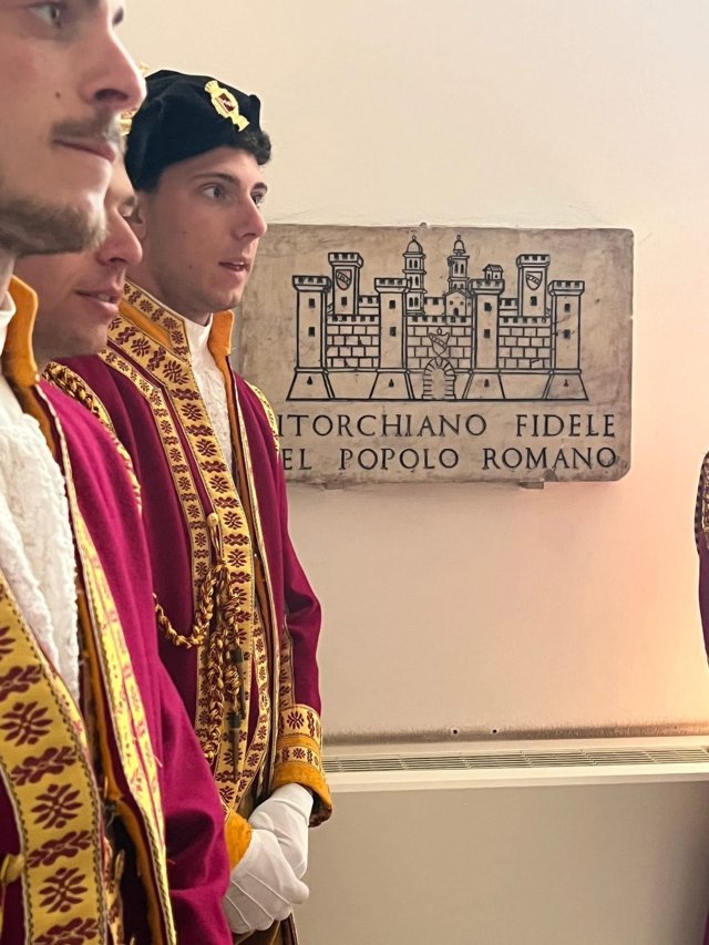 I Fedeli di Vitorchiano sono tornati a presenziare in Campidoglio il 21 aprile 2026 in occasione delle celebrazioni per il Natale di Roma. L’amministrazione capitolina, infatti, ha tenuto particolarmente ad avere vicino a sé Vitorchiano, in nome dell’antico patto di fidelato che risale al Medioevo e di cui il Comune di Vitorchiano sta portando avanti un’operazione di rinnovo ufficiale. Per l’occasione, Vitorchiano ha reso omaggio a Roma con la donazione dell’opera “Marzio” del maestro Cristiano Pari, presente all’evento.