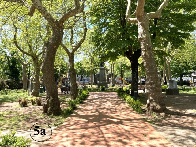 Quando si pensò di intervenire sul Prato Giardino, nel 2007, si asportò anche il cartello posto su alto stativo “Via dei Granatieri di Sardegna”, nel corto viale centrale che dal monumento ai Caduti conduce all’attuale fontana (foto 5a). Perché? Dove è finito?