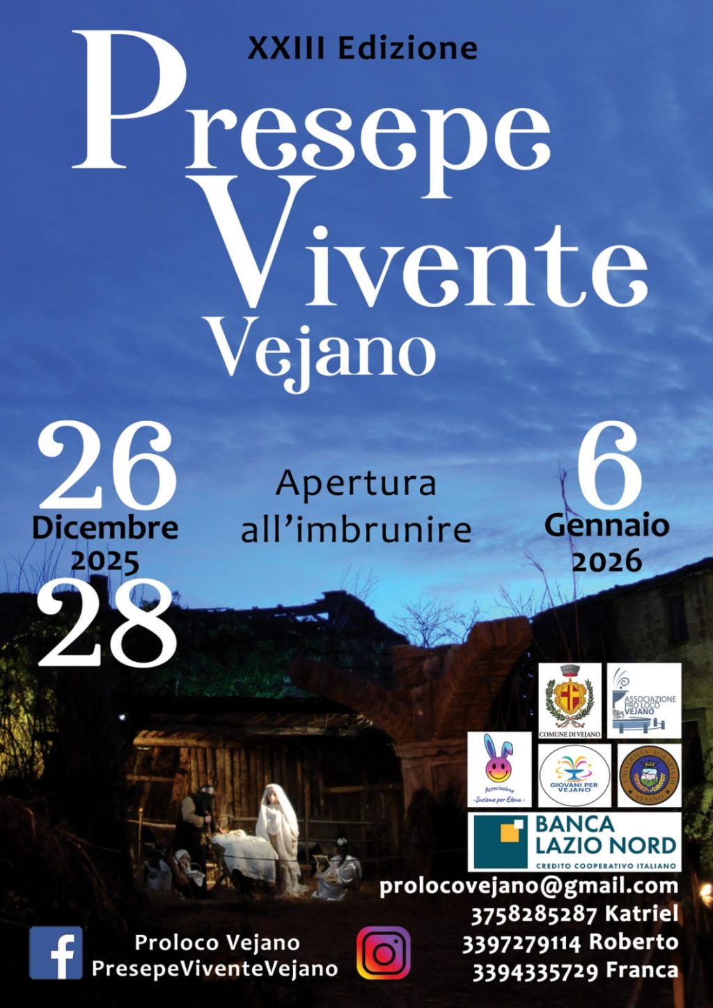 Anche quest’anno torna uno degli appuntamenti più attesi del territorio: il Presepe Vivente di Vejano, uno dei più suggestivi e partecipati del Lazio, pronto a trasformare il paese in una piccola Betlemme medievale.