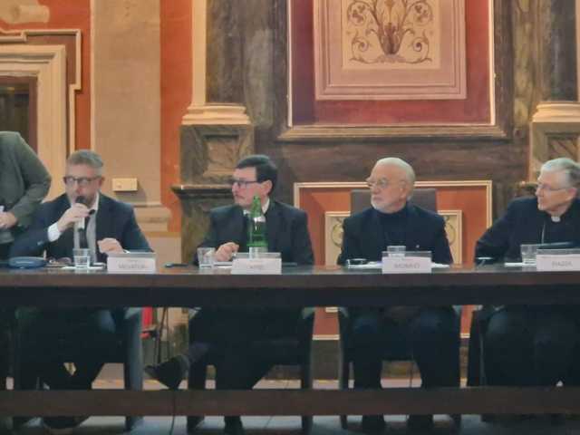 “Tre termini posti in relazione tra di loro, che ci fanno capire come senza cultura, ovvero senza un sentire comune, una città non diventa una comunità”, ha esordito mons. Orazio Francesco Piazza. Il vescovo di Viterbo ha incentrato la sua lectio intorno ai pensieri di Sant’Ambrogio (“prima di essere vescovo fu un grande politico”) che ha definito la città come ambito di diritti, di doveri e di virtù condivisa. È la concordia civica che crea le condizioni per ogni cittadino di partecipare al cum-munus, al dono condiviso. Ciò impone a ciascun abitante di sottrarre qualcosa a sé per dare spazio all’altro. In questo senso la città diventa vittoria sulla solitudine, dando a ciascuno ciò che gli è dovuto: un’amicizia sociale che ripaghi ogni persona della propria digintà.