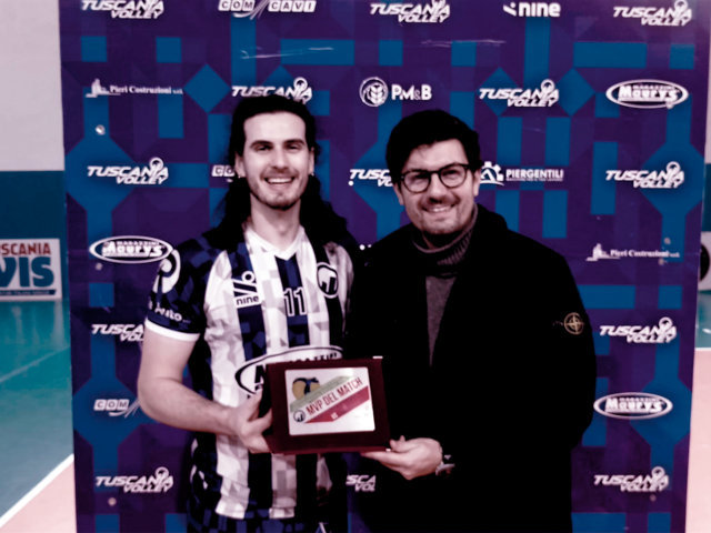 MVP del match Federico Marrazzo premiato da Marco Piozzi della Mediel.