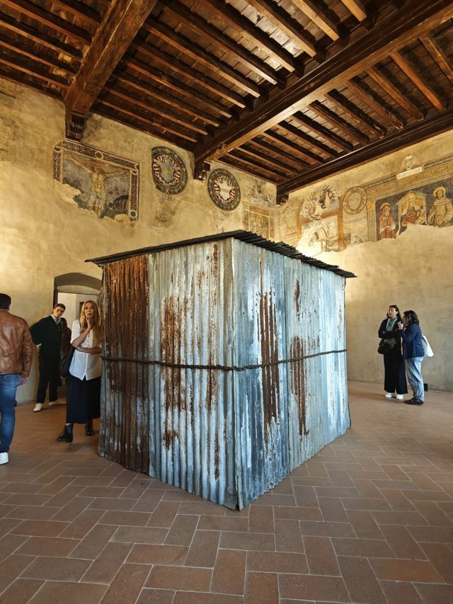 Davide Sarchioni, responsabile del progetto e curatore, proprio per Pellizzari, della mostra “Fiammetta” presso le sale storiche del Palazzo Pretorio nel comune di Certaldo, evidenzia come “quella di Valentina sia un’intuizione diventata forma, gesto, presenza. Un lavoro pensato appositamente per questo luogo, che ha a che vedere con la cura e l’accoglienza. Un’opera che dialoga con il paesaggio, che accoglie e invita a lasciarsi andare, proprio come quel vuoto che non spaventa ma chiama. Da qui si parte e si vola”.
