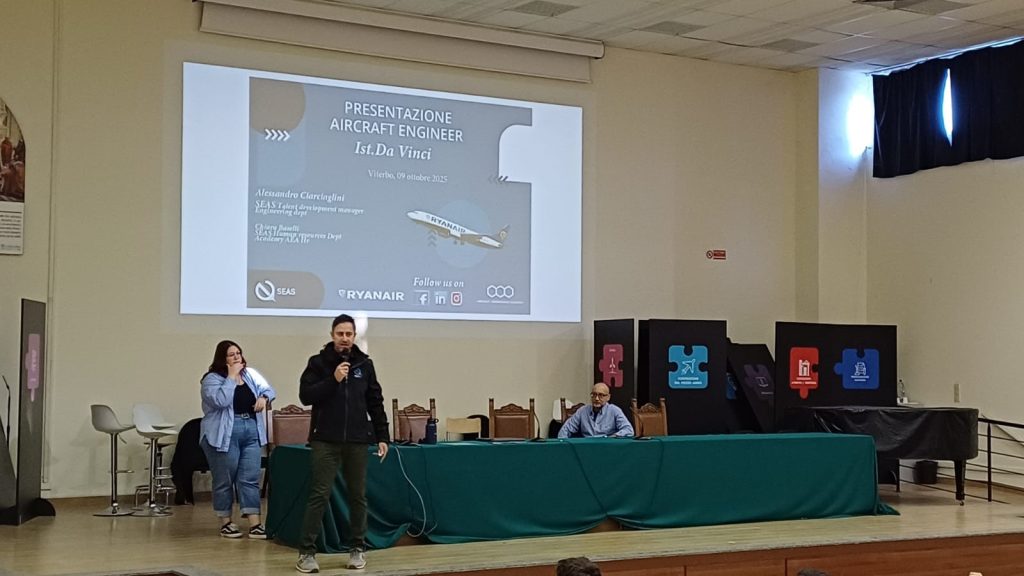 aeronautica e partner esclusivo di Ryanair per l’Italia, ha incontrato gli studenti delle classi quarte e quinte dell’indirizzo Costruzioni Aeronautiche dell’Istituto Tecnico Tecnologico “Leonardo Da Vinci” di Viterbo.