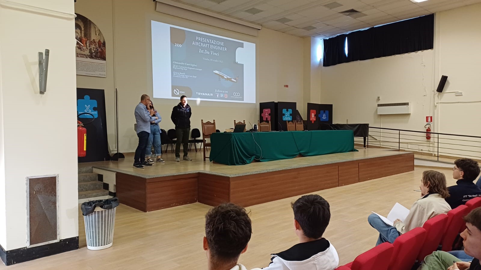 aeronautica e partner esclusivo di Ryanair per l’Italia, ha incontrato gli studenti delle classi quarte e quinte dell’indirizzo Costruzioni Aeronautiche dell’Istituto Tecnico Tecnologico “Leonardo Da Vinci” di Viterbo.